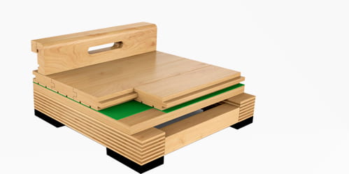 雙層龍骨結構——(專業比賽之選)符合德國DIN標準,彈性、吸震性良好,適用于大型比賽場館